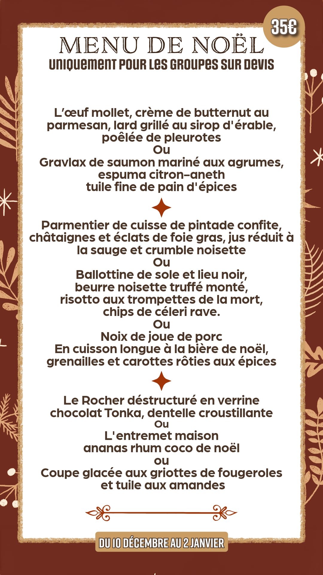 Menu Noël 35€ (groupes sur devis)