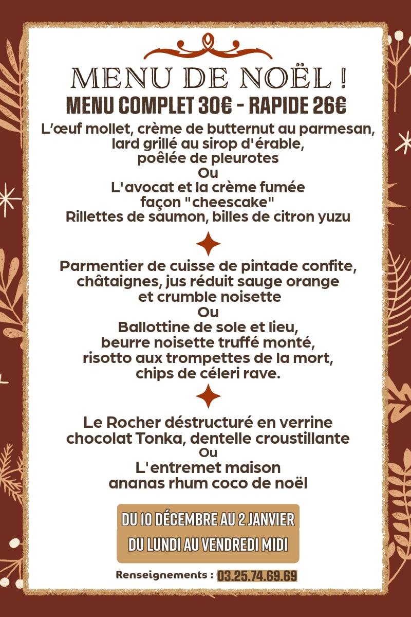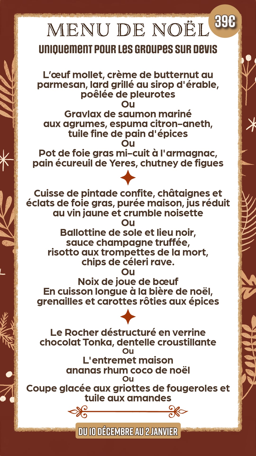 Menu Noël 39€ (groupes sur devis)